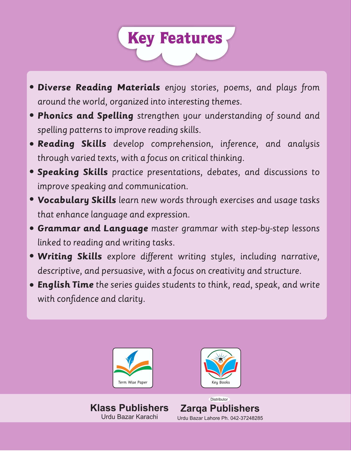 Students will also enhance their communication abilities through targeted speaking skills and build a rich vocabulary with practical exercises. The series masters grammar and language with step-by-step lessons and explores different writing styles, guiding students to think, read, speak, and write with confidence and clarity.