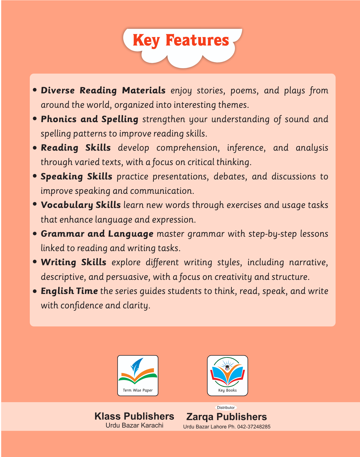 English Time (Book 2) expands on foundational language skills with more engaging and diverse reading materials, including stories, poems, and plays. The book strengthens reading skills by focusing on comprehension, inference, and critical thinking, while phonics and spelling sections continue to improve reading fluency.