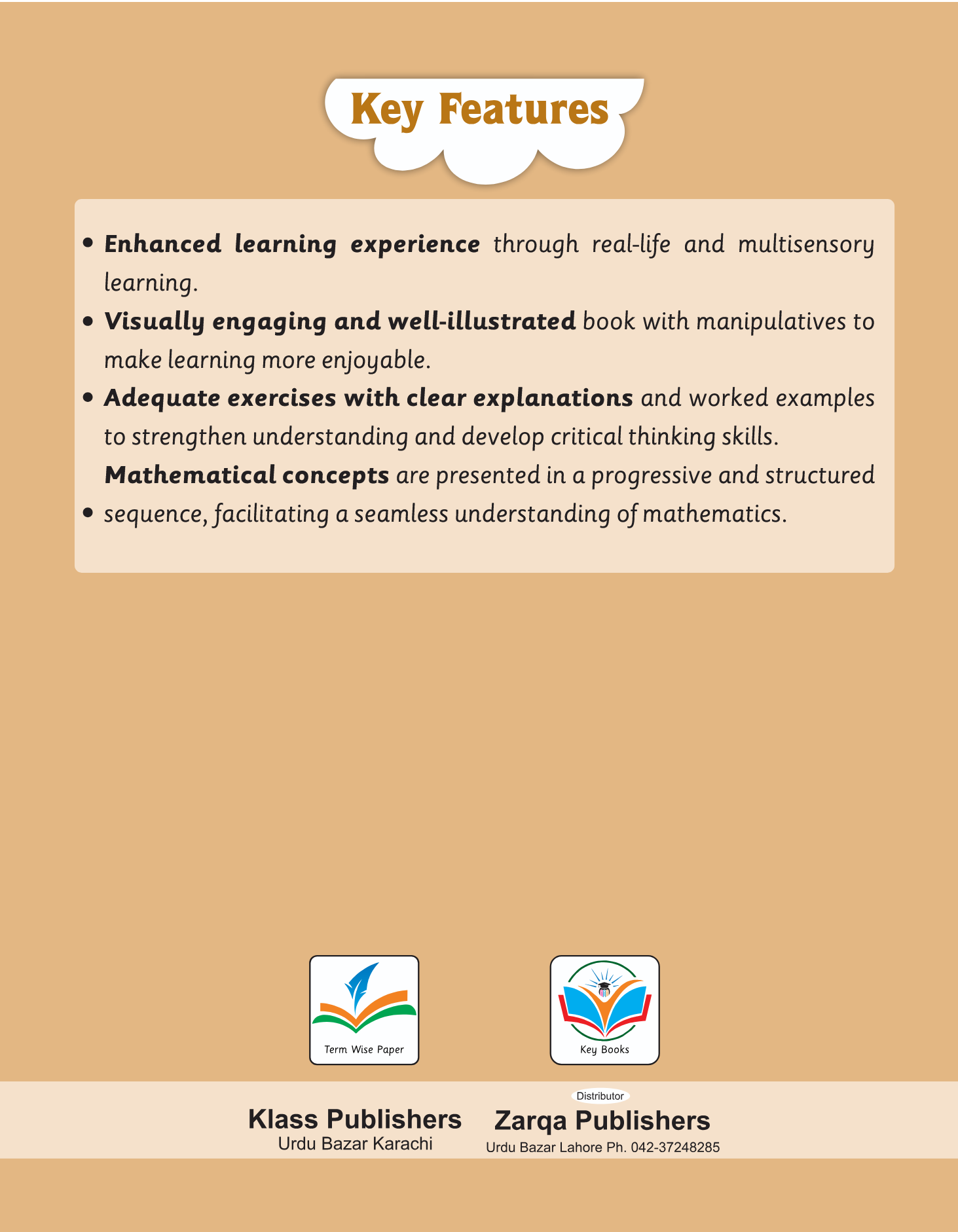 To ensure comprehensive learning, mathematical concepts are introduced in a progressive and structured sequence, building a strong academic foundation. It includes adequate exercises with clear explanations and worked examples, designed to reinforce learning and sharpen essential critical thinking skills.